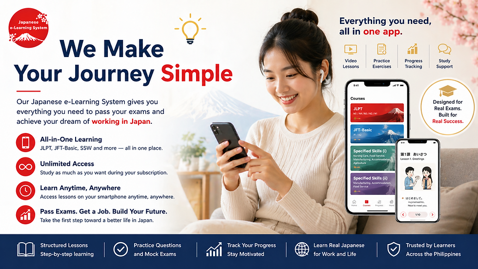 Japanese e-Learning System is the Ultimate Tool for JLPT & PROMETRIC (JFT-Basic & SSW) Exam Review and Preparation
